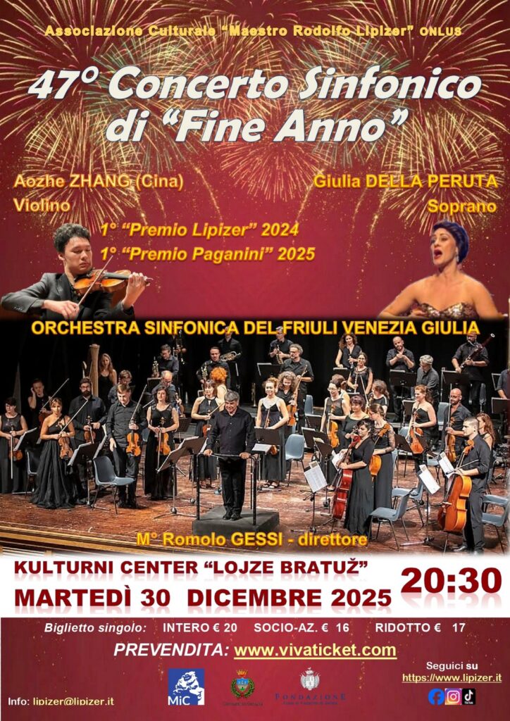 Zhang Aozhe tornerà presto a Gorizia come protagonista del Concerto di Fine Anno, in programma il 30 dicembre 2025 alle ore 20.30 presso il Kulturni Center Lojze Bratuž, accompagnato dall’Orchestra Sinfonica del Friuli Venezia Giulia, diretta dal M° Romolo Gessi.